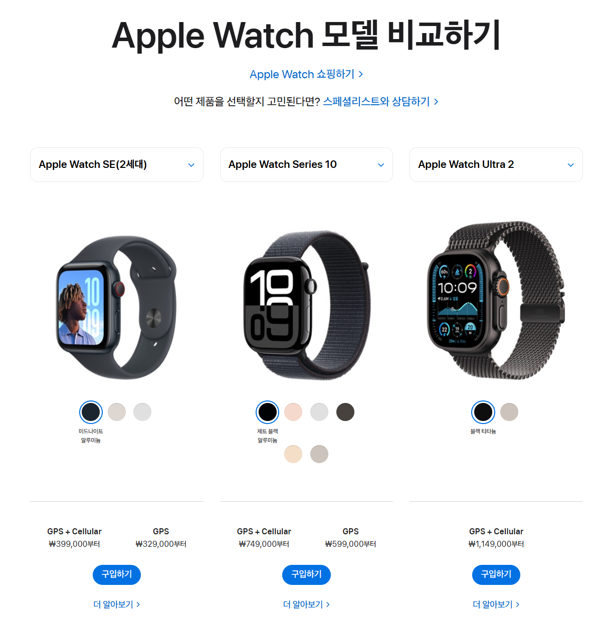 애플워치를 처음으로 접할 때 애플워치 10, 애플워치 SE2, 애플워치 울트라2 등 모델도 다양하고, 옵션에 따라 가격이 천차만별이어서 어떤 것을 골라야 할지 엄두가 안나는 경우가 있습니다. 거기에 어디서 사야 가장 혜택을 많이 보면서 살 수 있을지도 알아보려면 머리가 아풀 때가 있습니다. 각 모델별 주요기능과 옵션별 가격과 기능비교, 구입처별 장단점 까지 쉽게 정리하였습니다.