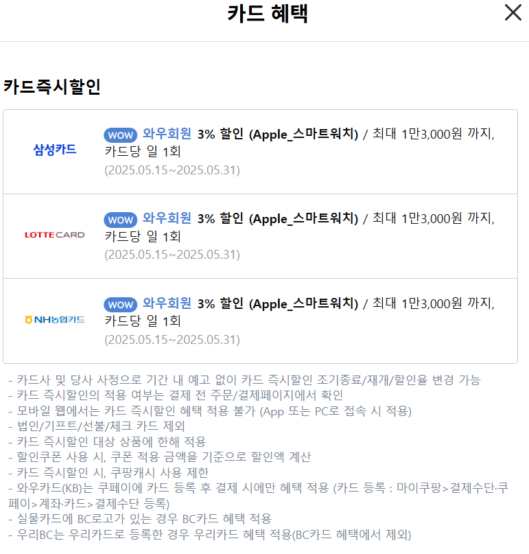 할인을 원하면 쿠팡 와우회원 + 카드할인