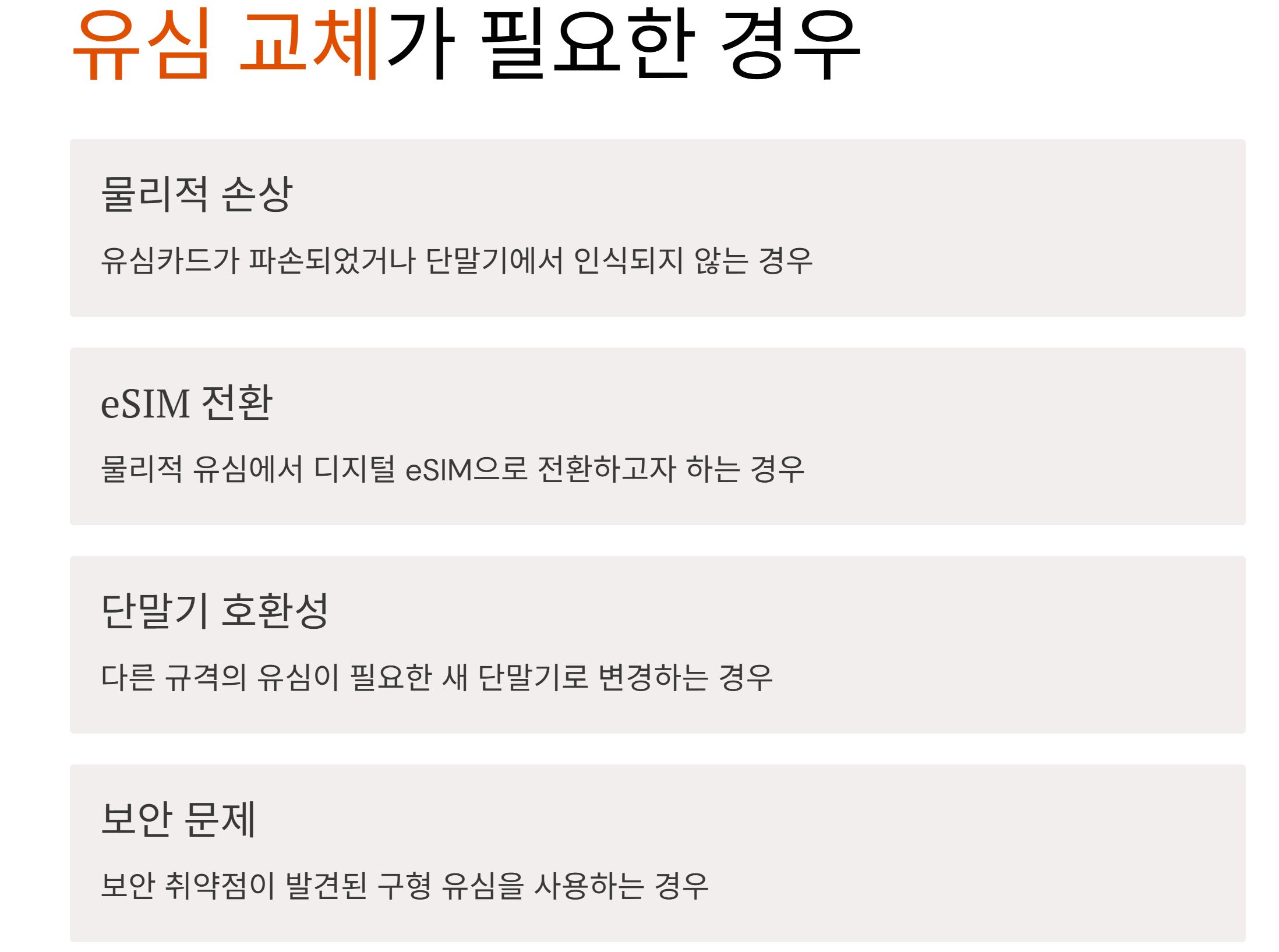 유심보호서비스 2.0 시행 이후에도 아래와 같은 경우에는 유심 교체가 필요할 수 있습니다.