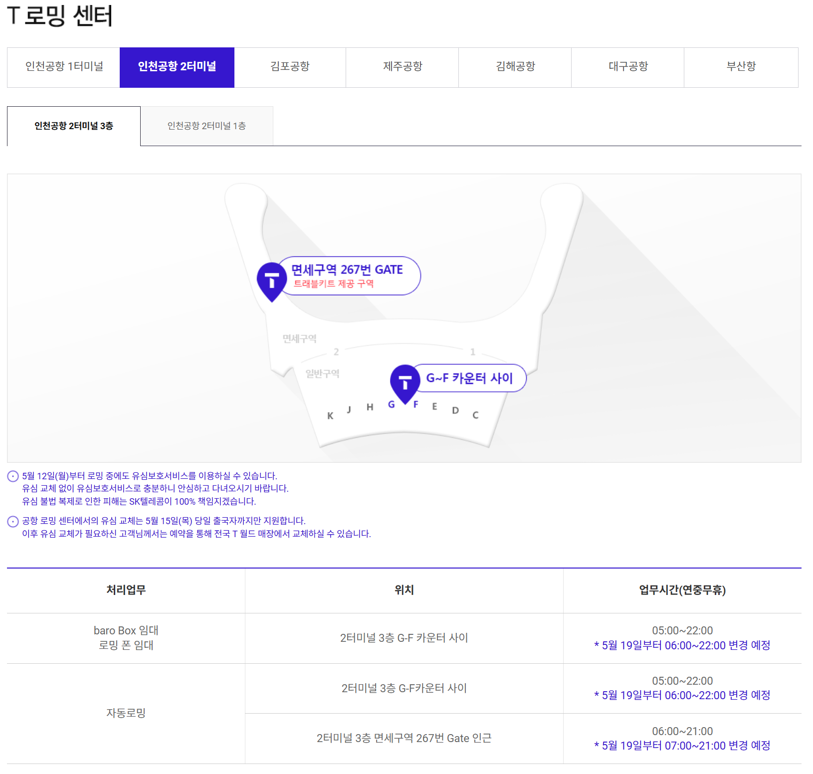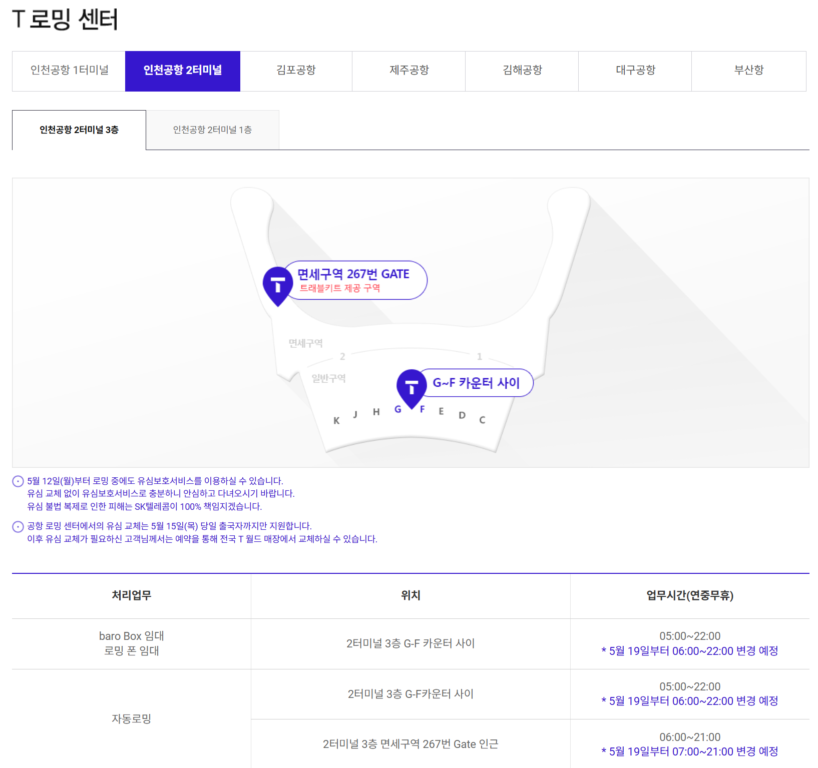 SKT는 공식 홈페이지 공지를 통해 공항 유심 교체 지원은 5월 15일(목) 부로 종료되며,